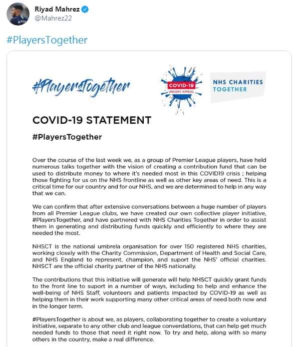 Riyad Mahrez joins the Premier League stars initiative to fight the epidemic # Corona Posted byOtmane Khiter9 Apr 2020Posted inNon classé Partager : Share on X (Opens in new window) X Share on Facebook (Opens in new window) Facebook Like Loading... Related